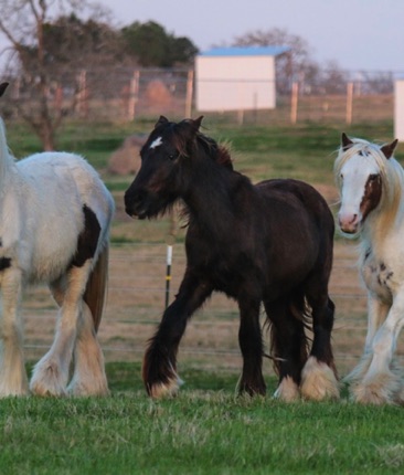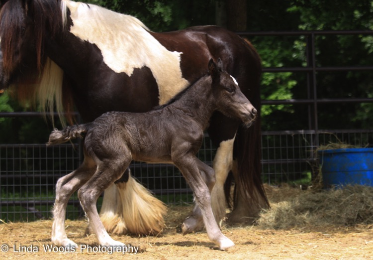 Thriller is out of Magic, sired by Smokey. Although several of the pics make him look bay, that's just sun bleach. He is solid black, and as of yet we haven't seen any signs of blagdon like his daddy. He is all personality and loves to be loved on and to do the same to you. As many of you who have watched our website for some time know, Magic's foals always turn out to be stunning examples of the breed with tons of mane, tail, and feather. We expect Thriller to be nothing less.
