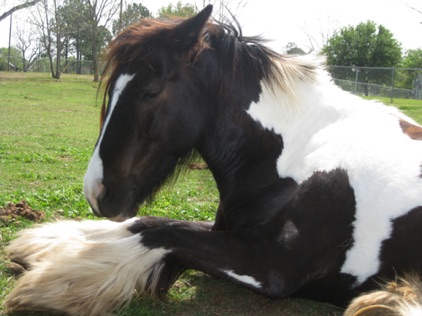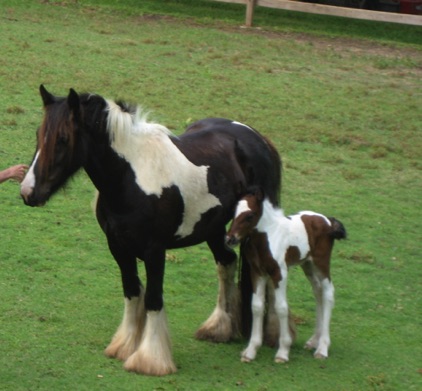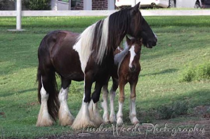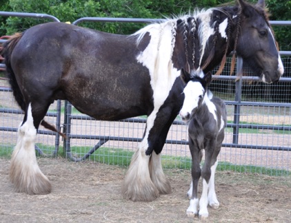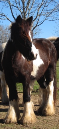 Magic is the first gypsy horse we purchased, and one of the finest. We bought her from BFSGH. That was 2006, and we didn’t know at the time there would be many more, but that is what this wonderful breed does to you. She is the daughter of “The Vincent Mare’s Filly” and “Stan’s Horse” (Son of the Lottery) from The Vines family in England. She had her first foal “Fancy” in May 2008, sired by Bandon. She has a wonderful sweet nature, beautiful markings, and is built like a tank. She foaled a crackerjack bay colt in June, “Odin”, sired by Bandon. She foaled an unbelievable filly (Dream) in May 2013. She foaled "Thriller" a black colt sired by "Smokey" in late May this year.